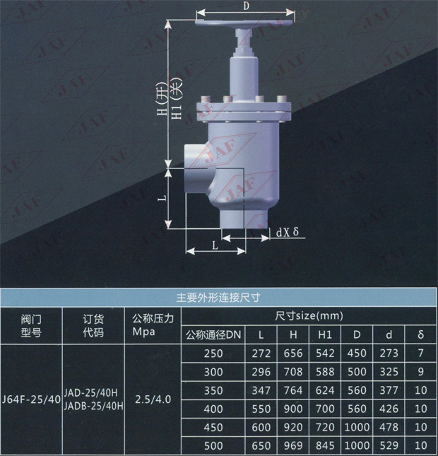 適用于公稱壓力為2.5/4.OMPa、公稱通徑為DN250~DN500閥體材料為鋼質(zhì)焊接的對焊直角截止閥。