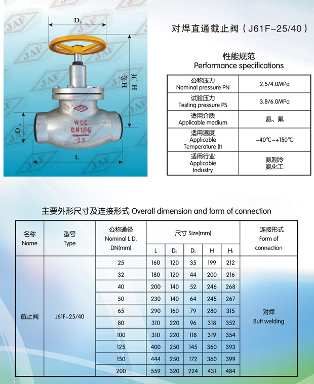 中南焦作氨閥股份有限公司是國家高新技術(shù)企業(yè),《氨用截止閥和升降式止回閥》國家標準起草單位,中國閥門協(xié)會、中國制冷協(xié)會常任理事單位,焦作市閥門工程技術(shù)研究中心,公司具有四十余年的生產(chǎn)歷史,擁有雄厚的技術(shù)力量和完善的生產(chǎn)、檢測設(shè)施,在同行業(yè)率先取得了ISO9001質(zhì)量管理體系認證和特種設(shè)備(壓力管道元件)制造許可證,1985年注冊的“JAF”商標,被譽為“中國制冷氨閥門”品牌。