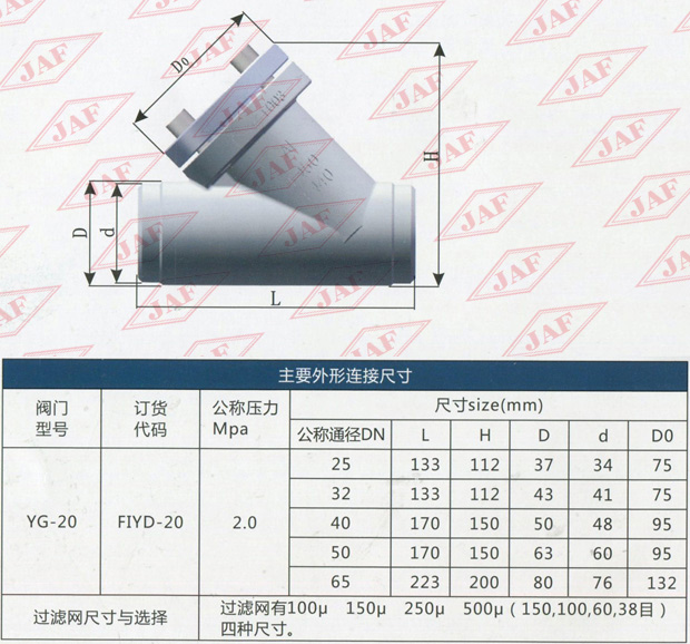 適用于公稱壓力為2.OMPa、公稱通徑為DN25~DN65閥體材料為鍛鋼的對(duì)焊直流過(guò)濾器。